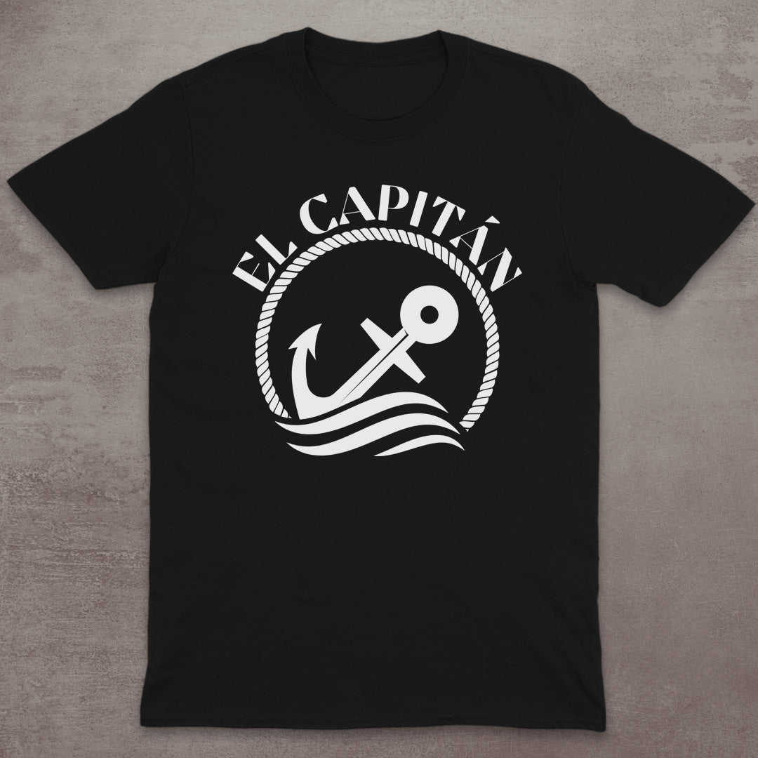 Lead the way—whether it’s a sailboat or a backyard barbecue. This nautical-themed T-Shirt features a bold anchor and wave design under the proud title “El Capitán.” It’s the ideal shirt for beach trips, boat days, or just being the boss of the vibes.
