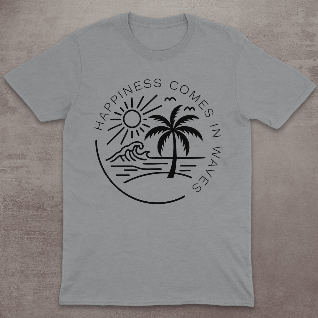 A gentle reminder that joy is just a tide away. With its minimal coastal line art and optimistic message, this T-Shirt captures the carefree rhythm of beach life. Ideal for ocean lovers, sun seekers, and anyone who knows happiness is better barefoot and sandy.
