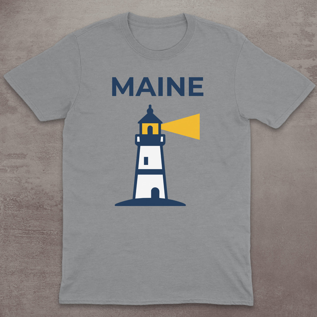 Featuring a clean, minimalist lighthouse casting a golden beam across the Atlantic, this design pays tribute to Maine’s rugged coastline. The deep blue and yellow tones are inspired by the official state flag colors, reflecting both maritime tradition and state pride.