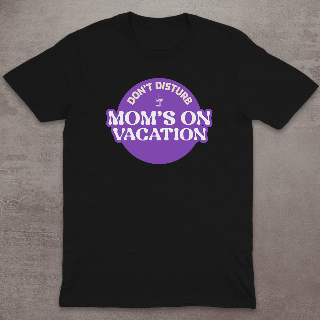 This playful T-Shirt features a bold purple graphic with the message "Donât Disturb, Momâs On Vacation" in retro bubble letters. Ideal for moms soaking up their time off, itâs a fun and comfy pick for beach getaways, cruises, or just well-deserved relaxation.