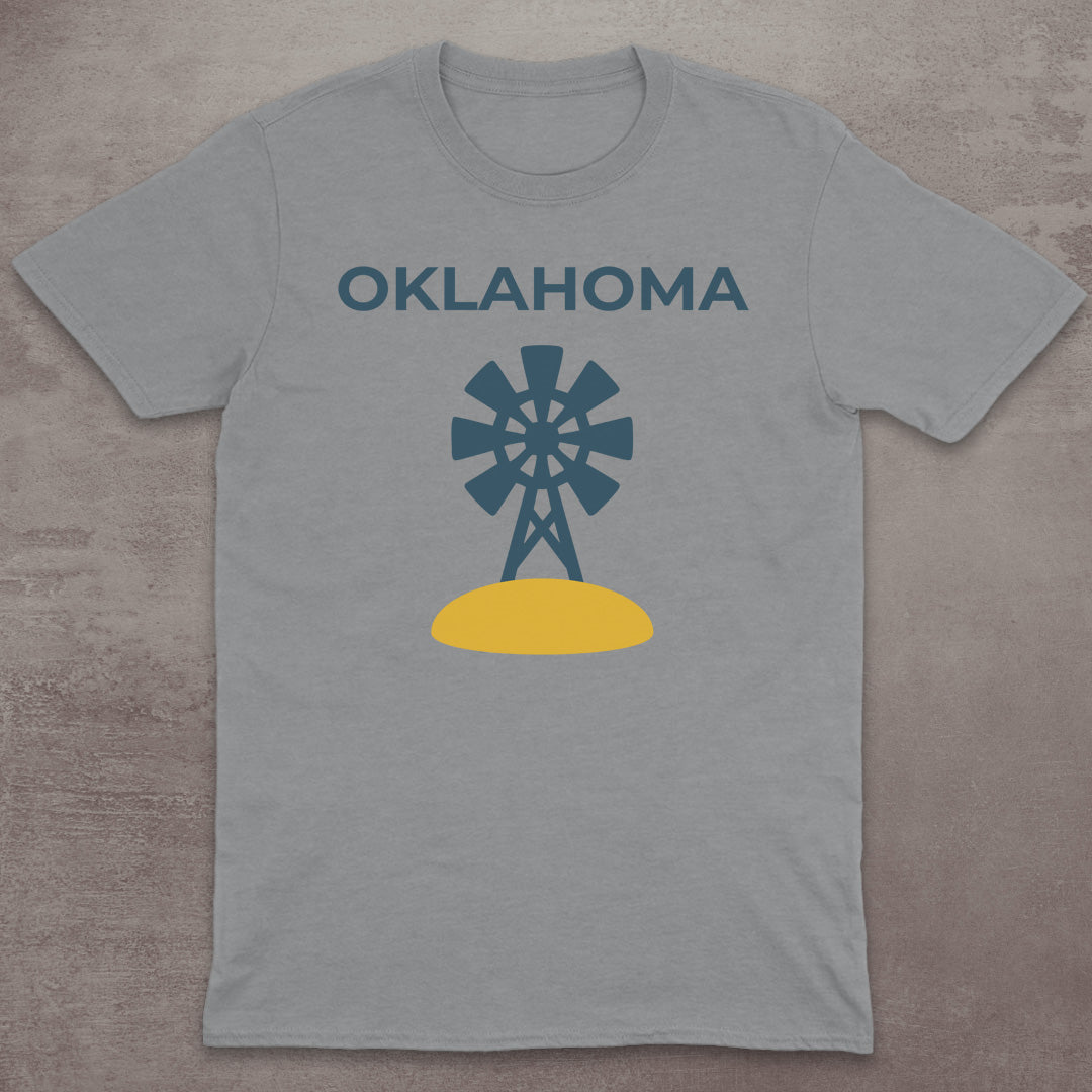 Celebrate the quiet beauty of the Great Plains with this Oklahoma design, featuring a classic windmill rising from golden earth. The navy and gold tones match the state flagâs iconic palette, evoking wide skies, open land, and a deep-rooted heritage.