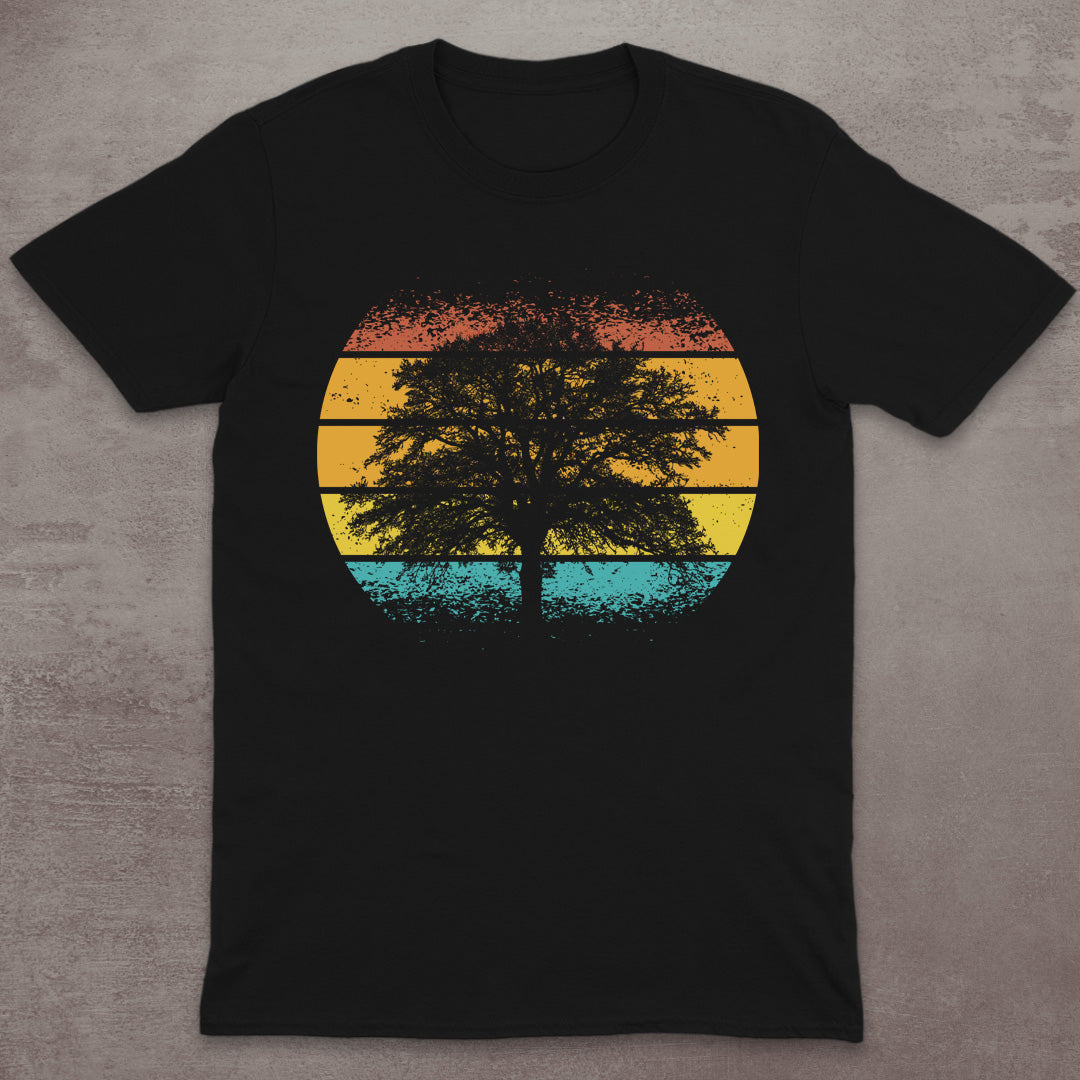 Rooted in calm, bold in color. This striking design features a lone tree framed by a sunset-striped circle, blending serenity with retro flair. Whether you're a nature lover, minimalist, or just into timeless graphics, this tee feels grounded and vibrant all at once.