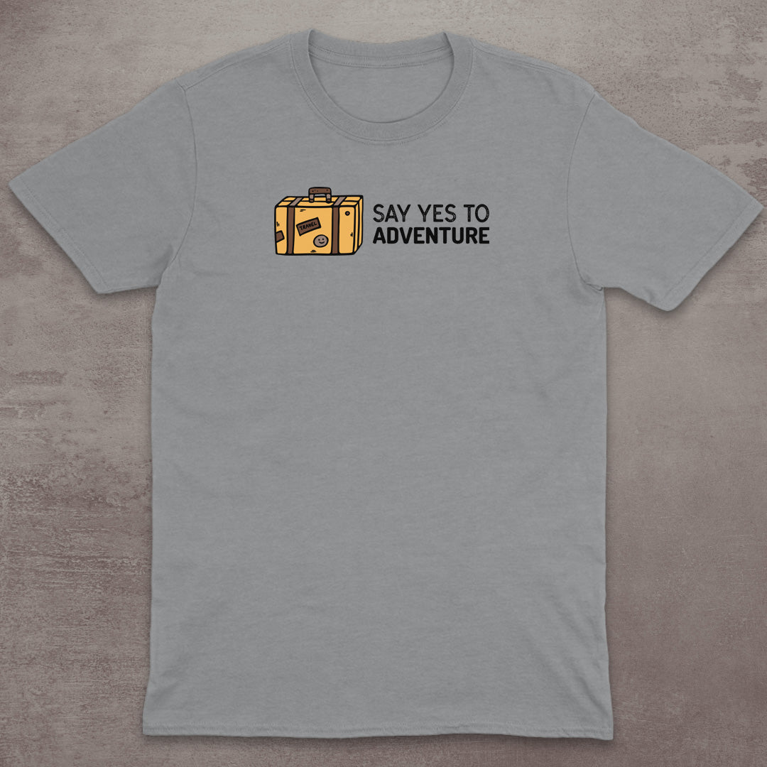 This playful T-Shirt features a yellow suitcase and the phrase "Say Yes to Adventure" in a bold, modern font. A fun choice for travelers, jetsetters, and anyone who’s always ready to pack up and explore what’s next.