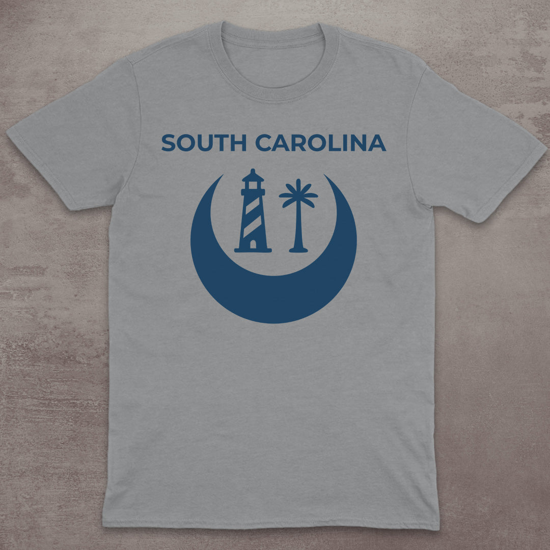Celebrate South Carolinaâs coastal legacy with this iconic crescent design featuring a lighthouse and palmetto tree. Rendered in deep indigo blueâa key color from the state flagâit captures the timeless beauty of the Lowcountry shoreline in a sleek, modern form.