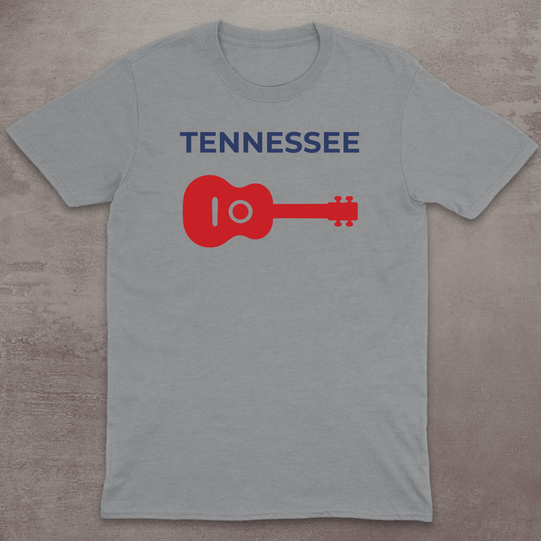 Celebrate Tennessee’s rich musical roots with this bold red guitar design, a nod to the state's legendary contributions to country and blues. The red and navy colors reflect the Tennessee state flag, making this shirt a perfect pick for fans of rhythm, roots, and road trips.