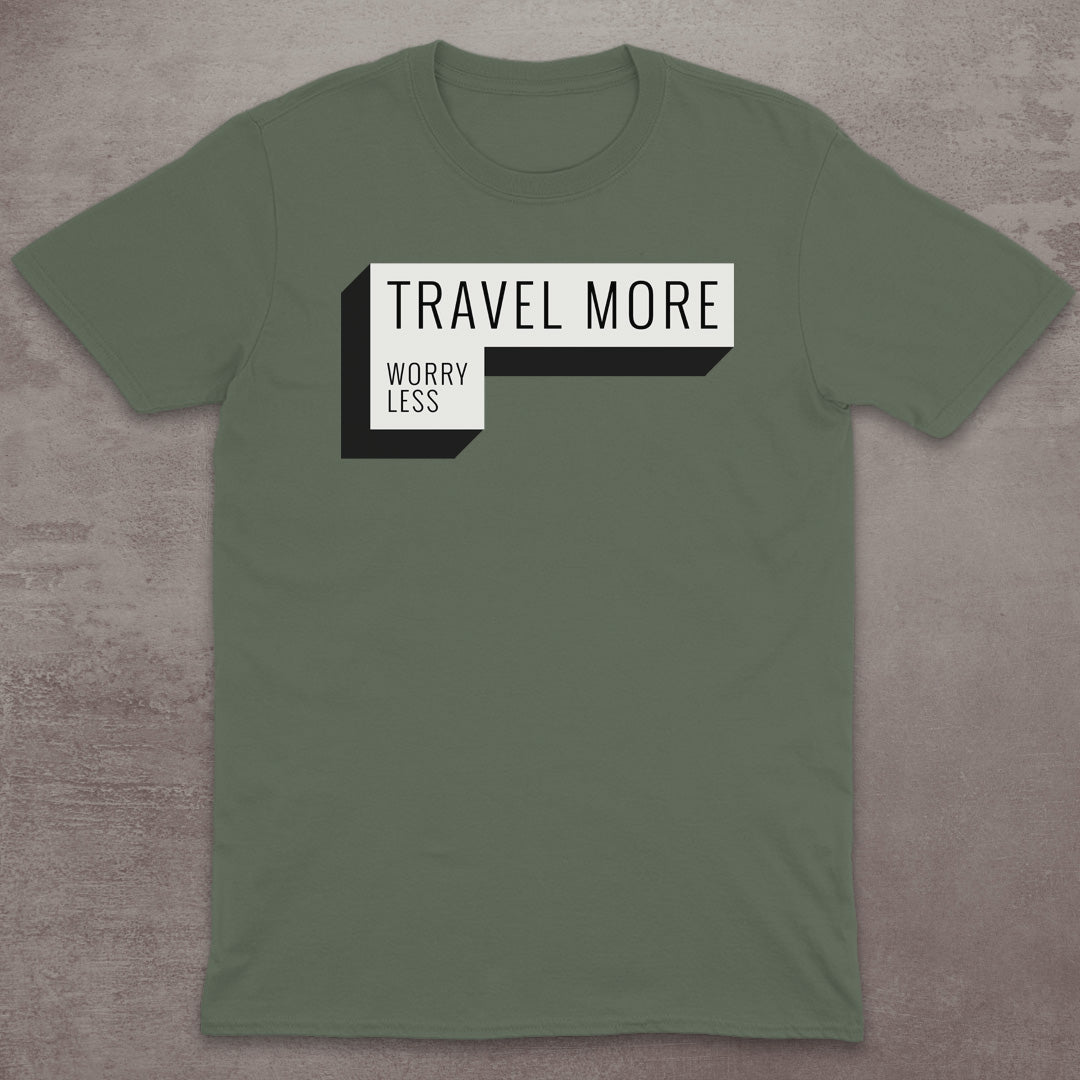Keep your mindset on the move with this modern graphic T-Shirt featuring the message "Travel More, Worry Less." Designed with bold, architectural typography and clean lines, it’s a great choice for travelers, digital nomads, and anyone who believes movement is the remedy.