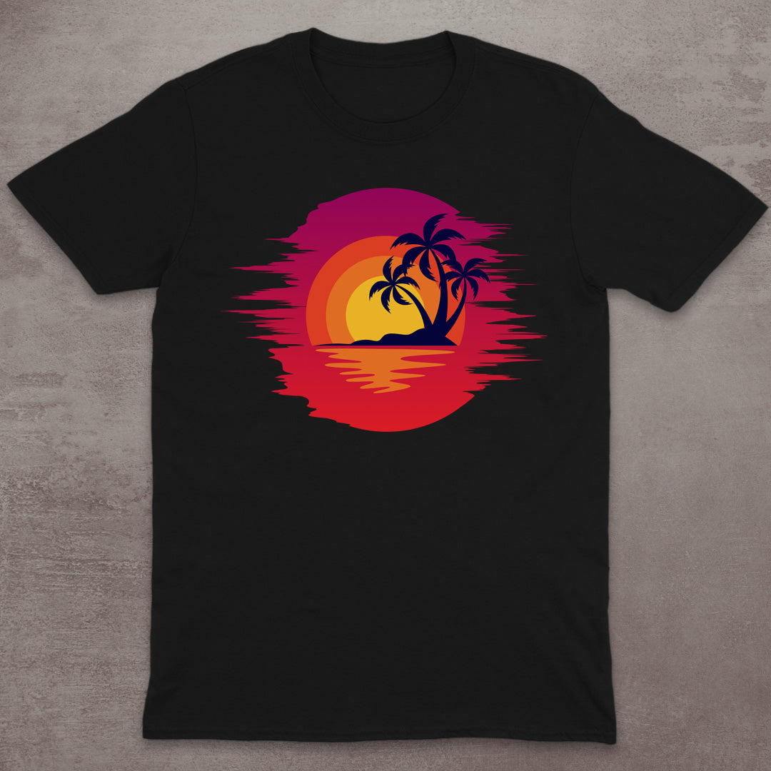 Catch the last light of day in bold color. This vibrant island silhouette design blends neon warmth with palm-lined peace—made for beach dreamers, sunset watchers, and everyone chasing endless summer. A retro-fresh look that turns heads from boardwalk to bonfire.